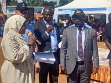 Mayuge RDC, Lt. Hajji Walugembe Aramandhani, officially commissions the solar-powered water supply system in Mitimito village (November 2025).
