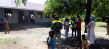 Country Director of Life Water International, Mr. Curuma Emmanuel dancing with community members