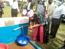 The third prime minister, Hon. Rukia Nakadama today officiated the commissioning of safe water project in Namoni parish- Malongo sub county by Living water international an NGO that is operating in Mayuge District in the sub counties of Malongo and Bukabooli. The district chairperson, Bishop Tibagendeka Frank was also present at the function which included a fundraising for extension of water supply from Namoni Health center to the community.